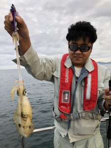 午前チャーター便のティップランとエギング...